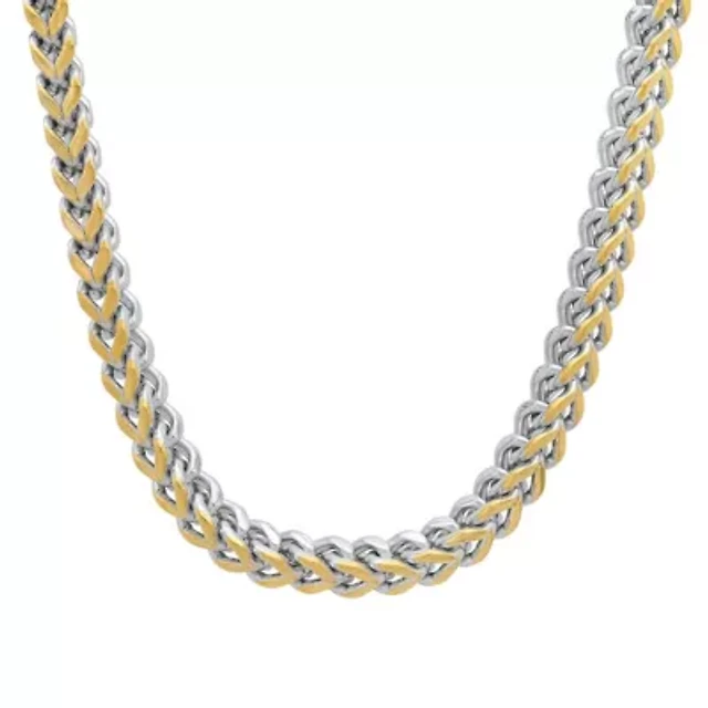 Men's two tone stainless steel and 18k gold plated wheat link bracelet