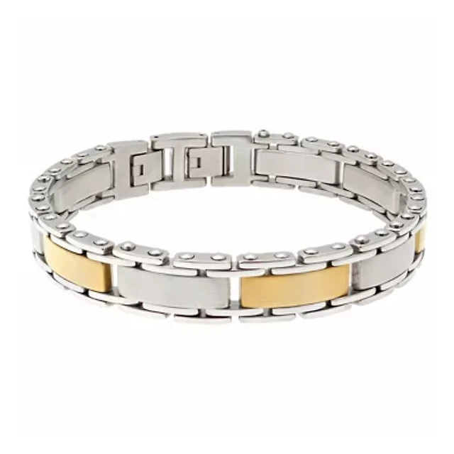 Mens Stainless Steel and Gold Ion Plated Link Bracelet