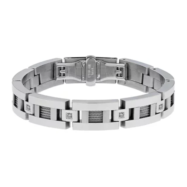 Sideways Mens Stainless Steel 9 Inch Link Cross Chain Bracelet