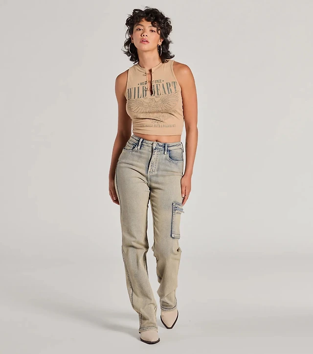 Plus edgely™ High Rise Ripped Wide Leg Jean