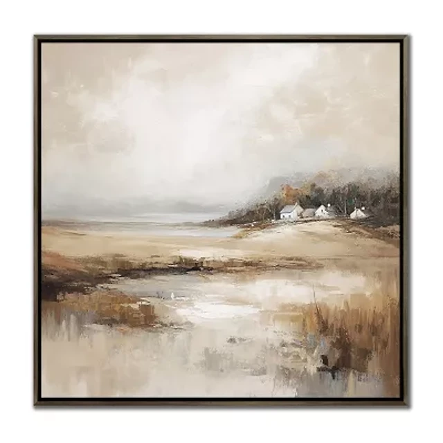 Streamline Art Seaside Cottages Ii Framed Canvas Art