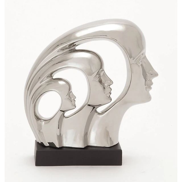12" Silver Porcelain Contemporary Family Sculpture
