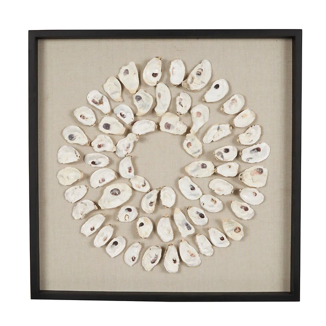 28" Cream, Beige & Black Handmade Abstract Circular Shell Wall Décor