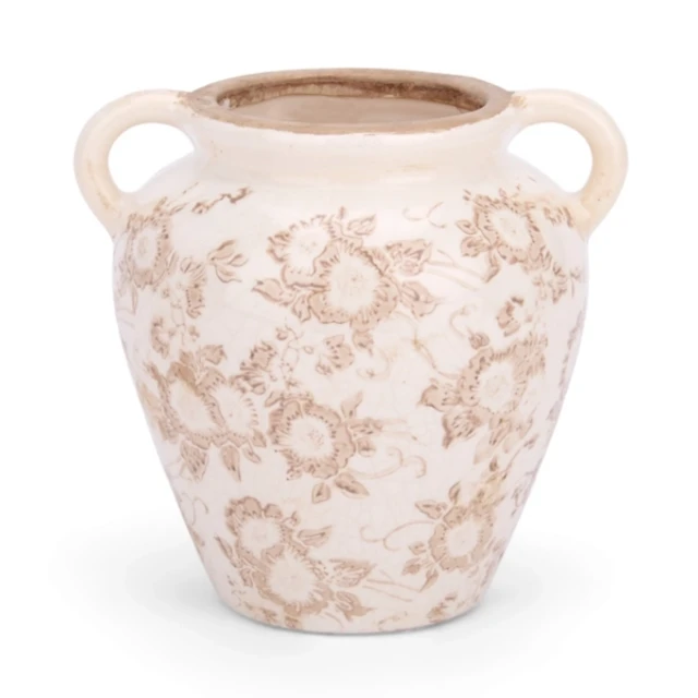 Cream and Beige Floral Ceramic Vase, 6.7 in.