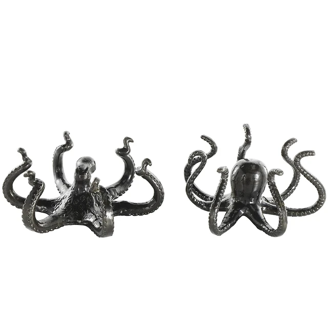 Black Aluminum Metal Octopus with Splayed Arms Sculpture Set