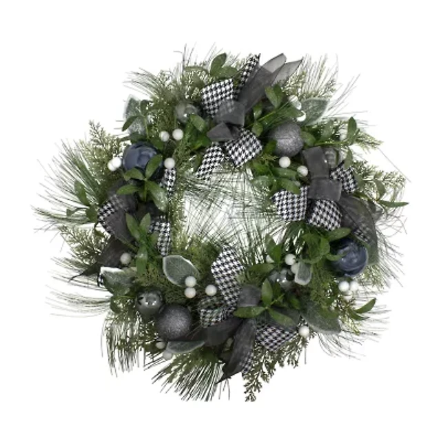 Houndstooth and White Berries Artificial Christmas Wreath - 24-Inch Unlit