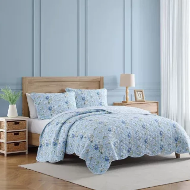 Donna Sharp Blue Diamond Floral Easy Care Quilt Set