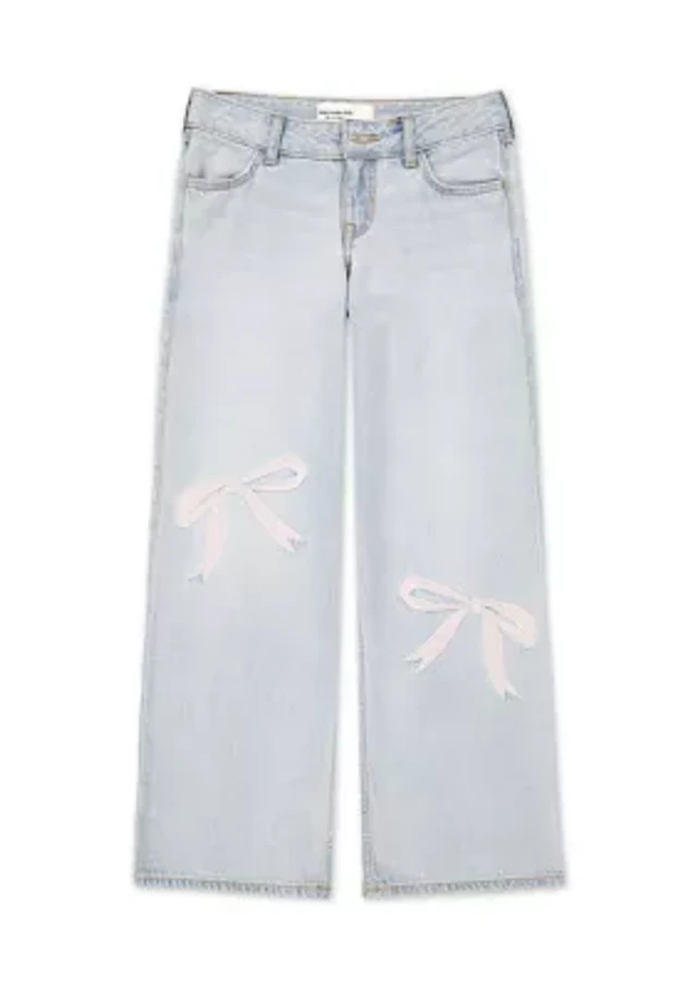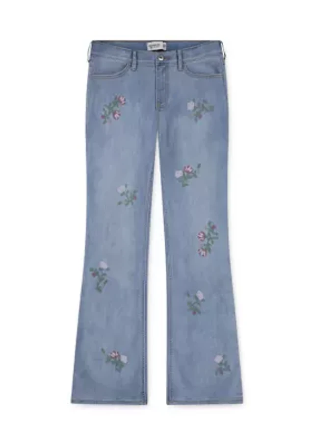 Girls 7-16 Rhinestone Floral Embroidered Flare Jeans