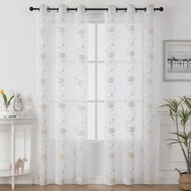 Regal Home Willa Grommet Top Embroidered Sheer Set of 2 Curtain Panel