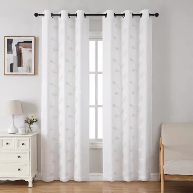 Regal Home Jaffa Grommet Top Embroidered Sheer Set of 2 Curtain Panel