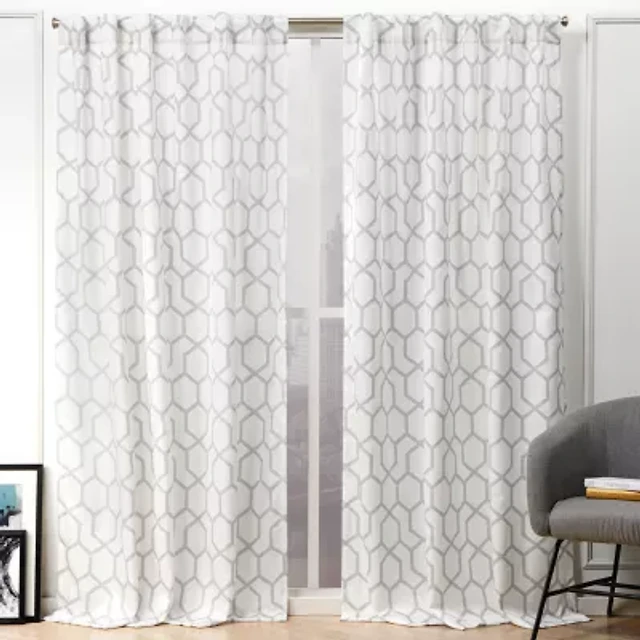 Queen Street Linda Rod Pocket Embellished Light-Filtering Set of 2 Curtain Panel