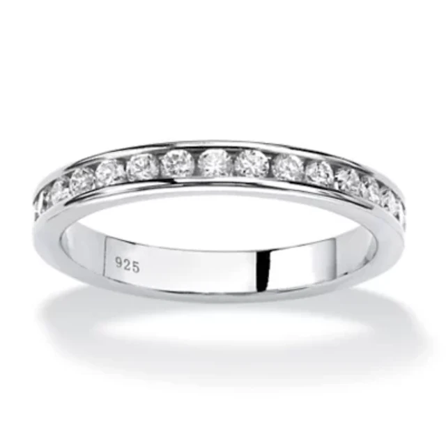 Womens Cubic Zirconia Sterling Silver Band