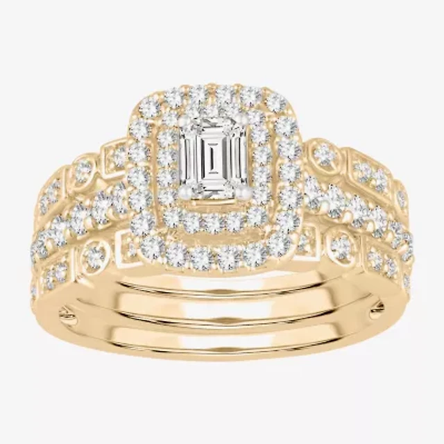G-H / Si1-Si2) Womens / CT. T.W. Lab Grown White Diamond 14K Gold Side Stone Halo Bridal Set