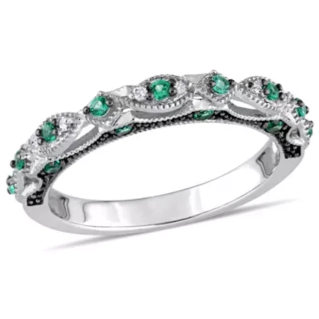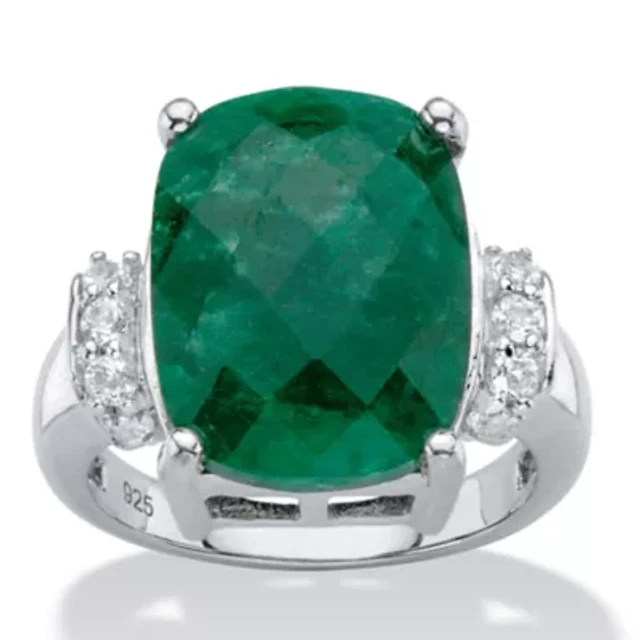 Yes, Please! Womens Lab Created Green Emerald Sterling Silver Side Stone Cocktail Ring