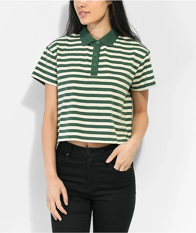 Empyre Wilanne Green & White Stripe Crop Polo Shirt