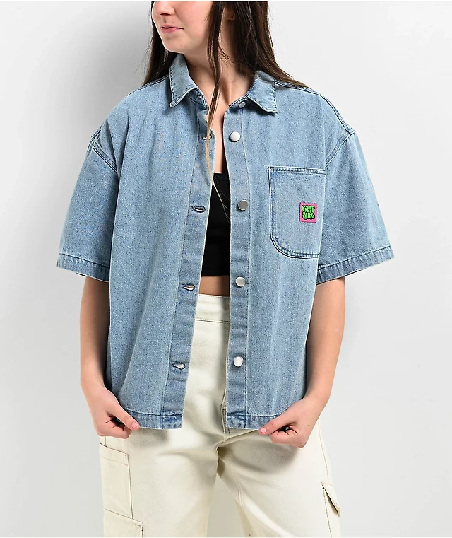 Empyre Bucky Rose Beige Crop Button Up Short Sleeve Shirt