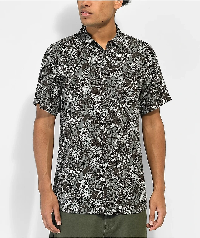Empyre Overgrown Short Sleeve Black Button Up Shirt
