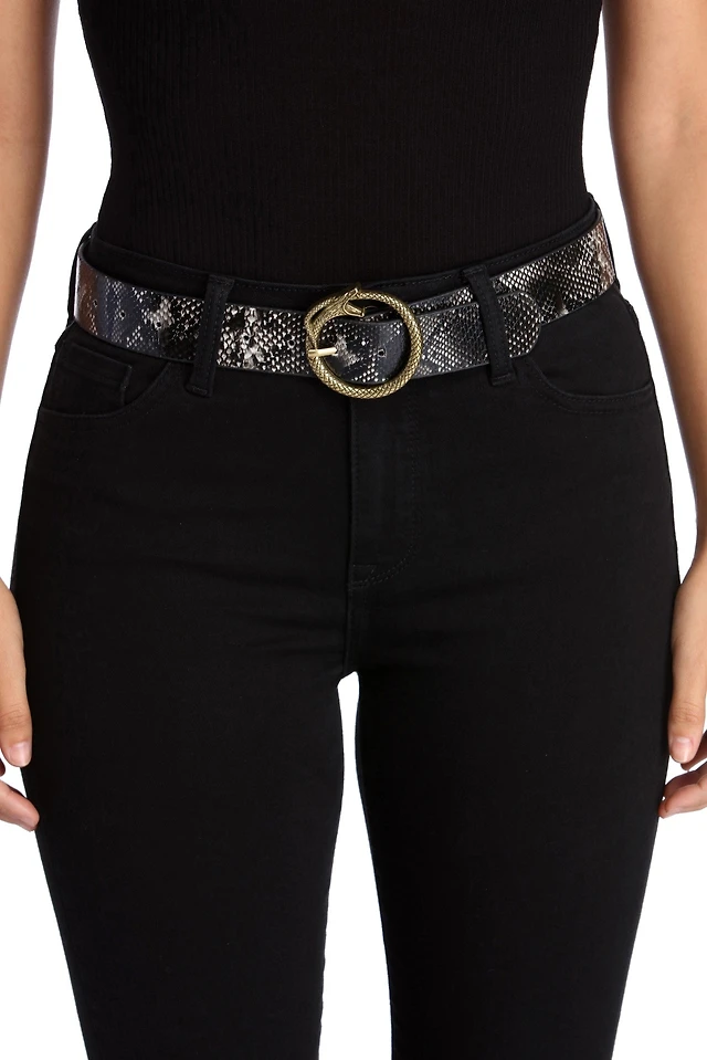 Wide Ring-Buckle Faux-Leather Belt For Women (1 1/2")