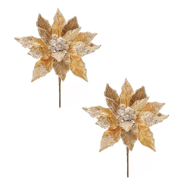 28" Beaded Velvet Poinsettia Flower Stems, 2ct.