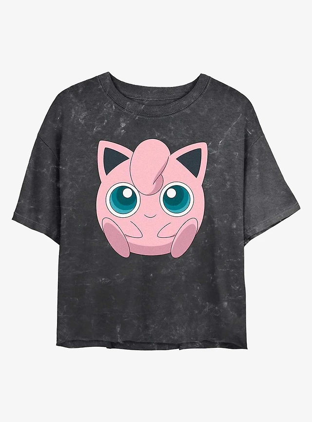 Pokemon Jigglypuff Face Mineral Wash Womens Crop T-Shirt