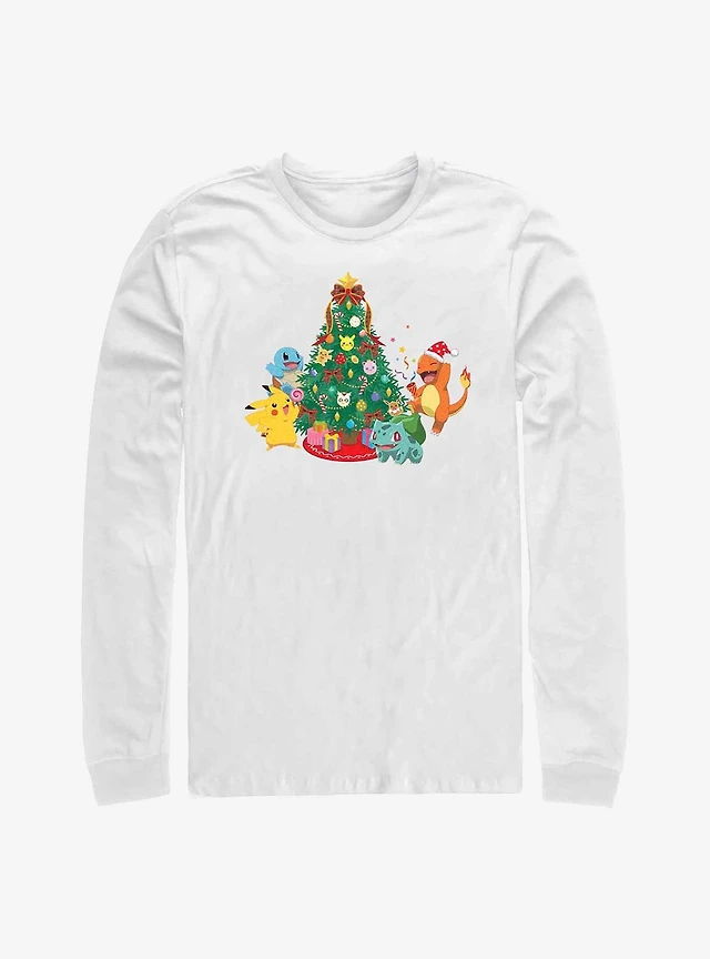 Pokémon Christmas Tree Pikachu, Squirtle, Bulbasaur And Charmander Long-Sleeve T-Shirt