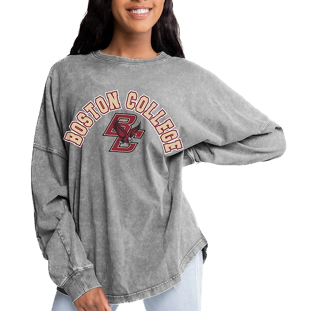 Women's Gameday Couture Gray Georgia Southern Eagles Faded Wash Pullover Sweatshirt