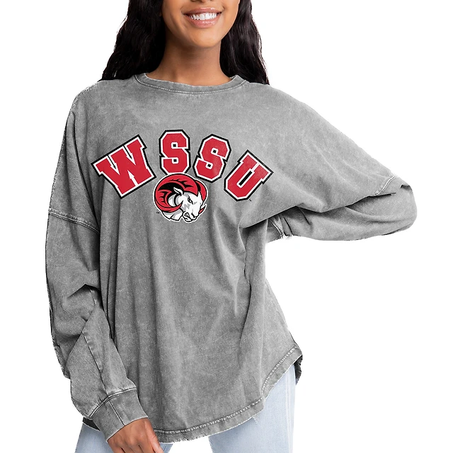 Women's Gameday Couture Gray Fort Hays State Tigers Faded Wash Pullover Sweatshirt