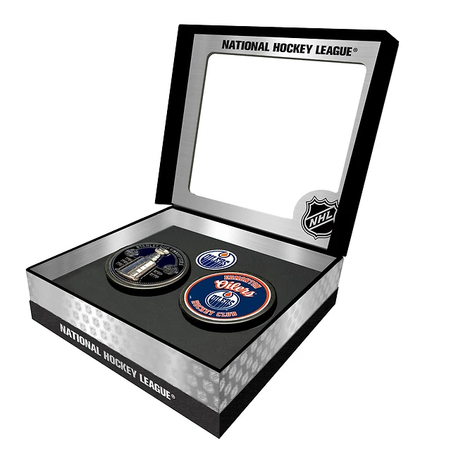 Edmonton Oilers Stanley Cup Retro Puck & 3D Cup Puck Gift Box Set