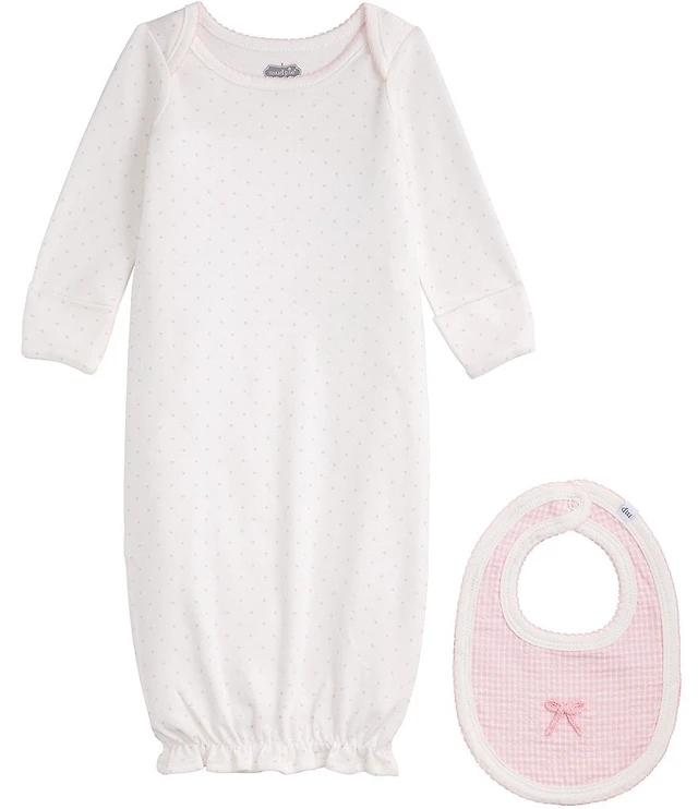 Mud Pie Baby Girls Cotton Dotted Gown & Gingham Print Bow 2-Piece Set