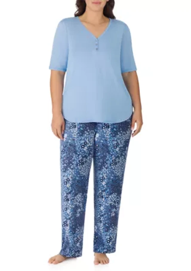 HONEYDEW Blissful Solid Long Sleeve Henley Neck Pajama Set