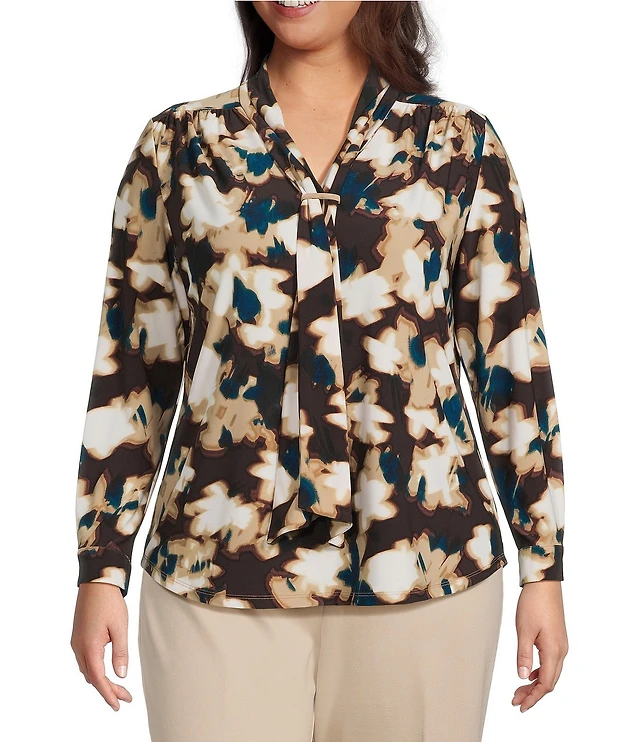 Petite Paisley Ruffle Neck Tie Cuff Blouse