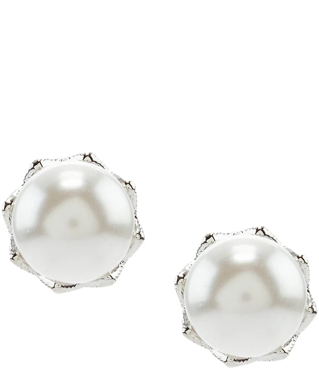 Anne Klein Faux-Pearl Framed Stud Earrings