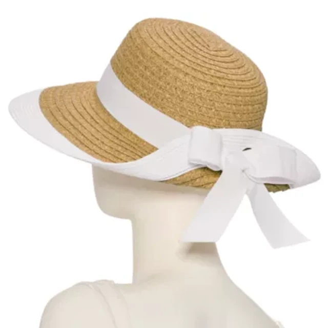 Liz Claiborne Straw White Trim Bow Womens Floppy Hat