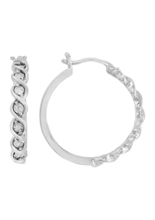 Diamonart Womens Cubic Zirconia Sterling Silver 23mm Curved Hoop Earrings
