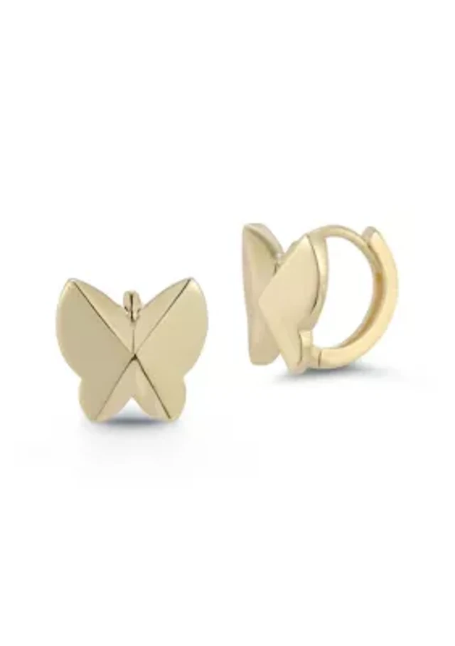 14K Gold Leaf Charm Huggie Hoop Earrings