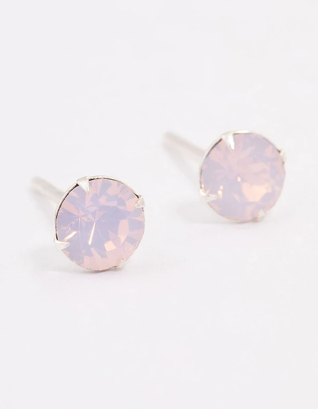 Child's Pink Crystal Butterfly Stud Earrings in Sterling Silver