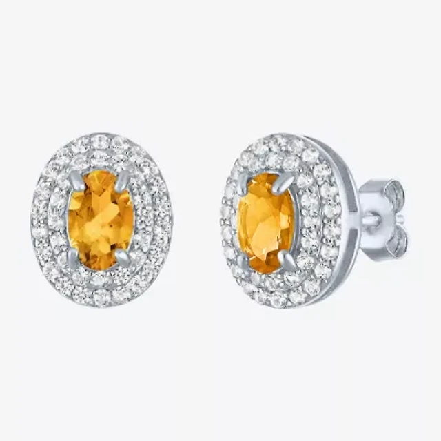 Gemstone & Lab-Created White Sapphire Sterling Silver Oval Double Halo Stud Earrings