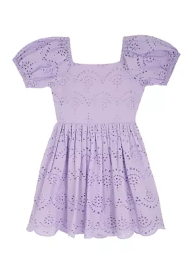 Girls 7-16 Floral Lurex Chiffon Smocked Dress