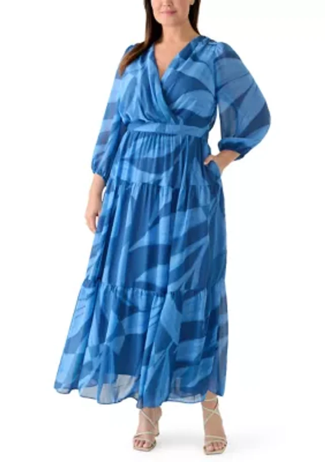 Jessica Howard Womens Plus 3/4 Sleeve Fit + Flare Dress