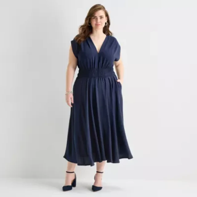 Smocked Flutter Sleeve Midi Dress