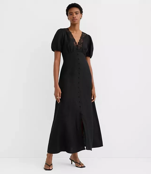 Petite Floral Linen Cotton Strappy Midi Pocket Dress