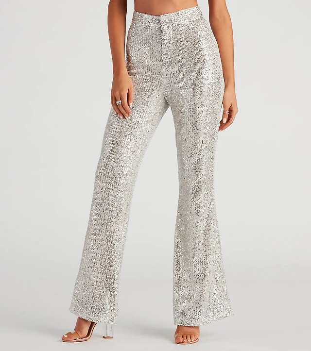 Glitzy Vibes Rhinestone Knit Flare Pants