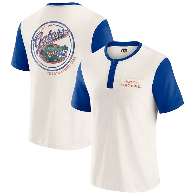 Women's WEAR by Erin Andrews White Florida Gators Baseball Logo Raglan Henley T-Shirt