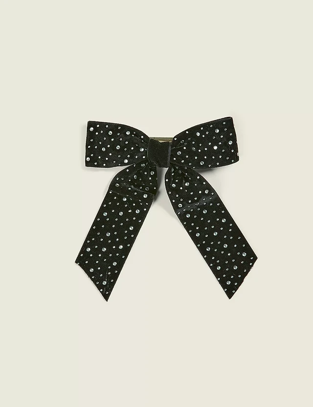 Black Large Embellished Bow Clip