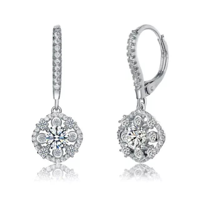 Cubic Zirconia Flower Hoop Earrings in Sterling Silver