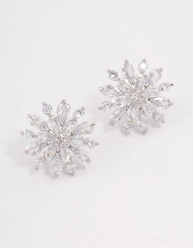 Cubic Zirconia Flower Stud Earrings in 10K Gold