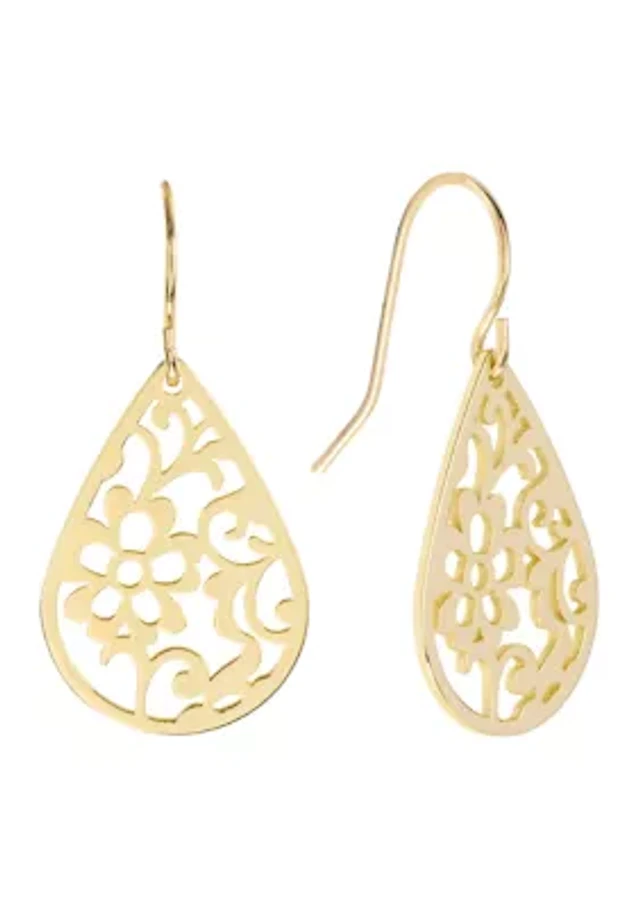 Gold Diamante Wire Swirly Flower Drop Earrings