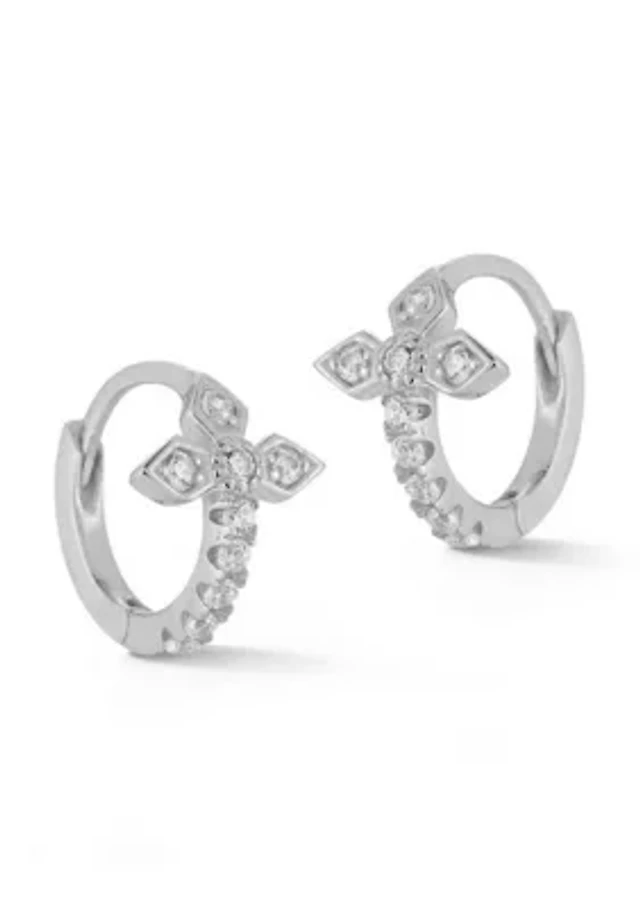 Sterling Silver CZ Flower Huggie Hoop Earrings