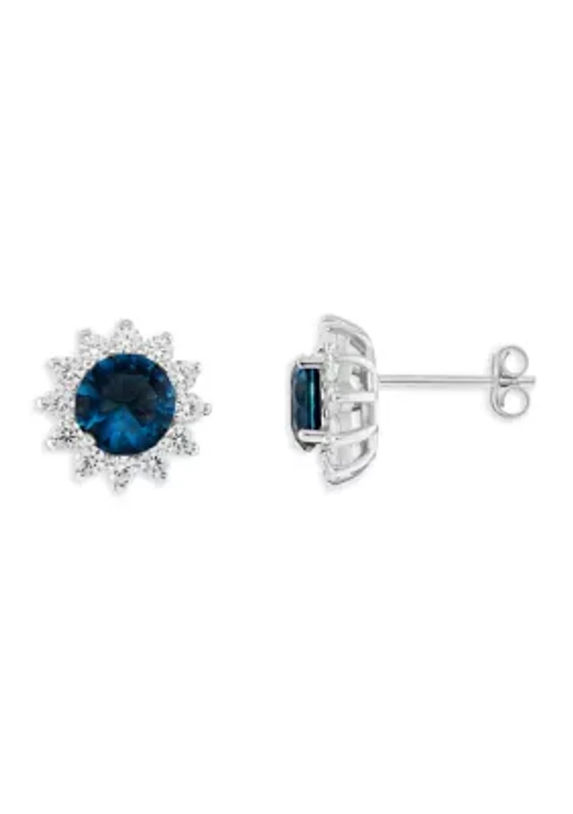 Gems of Serenity Pear-Shaped Blue & White Lab-Created Sapphire Dangle Earrings Sterling Silver