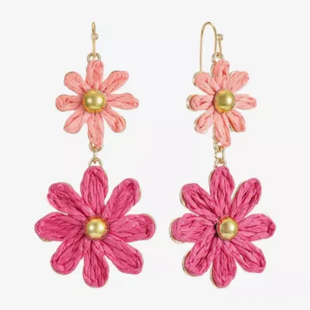 Natasha Accessories Painted Flower Resort Double Drop Statement Earrings